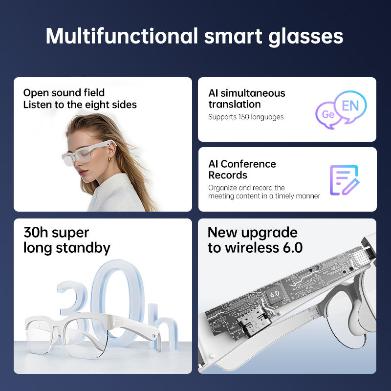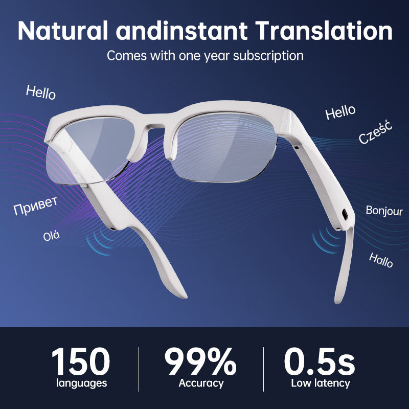 اكتشف مستقبل التواصل مع النظارات الذكية AI Translator Glasses. ترجمة صوتية فورية لـ 150 لغة، سماعات مدمجة، وتصميم عصري يجمع الأناقة والتكنولوجيا في إطار واحد. تواصل بثقة في أي مكان وأي وقت بدون حواجز لغوية.